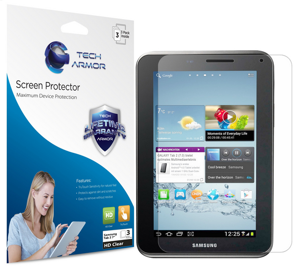 Tech Armor SP-HD-SAM-GT27-3. Gerätetyp: Tablet, Markenkompatibilität: Samsung, Kompatibilität: Galaxy Tab 2. Bildschirmdiagonale: 17,8 cm (7 Zoll). Menge pro Packung: 3 Stück(e)