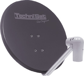 6385/8980 - Satman 850 Plus, UNYSAT-Quatro-Switch-LNB - 85cm, F/D: 0.67, Gewinn: 38.2dB (bei 11.3GHz), G/T: 17.2dB/k (LNB 1.0dB max.), Offsetwinkel: 21 Grad, aluminium, grau, 2.9kg