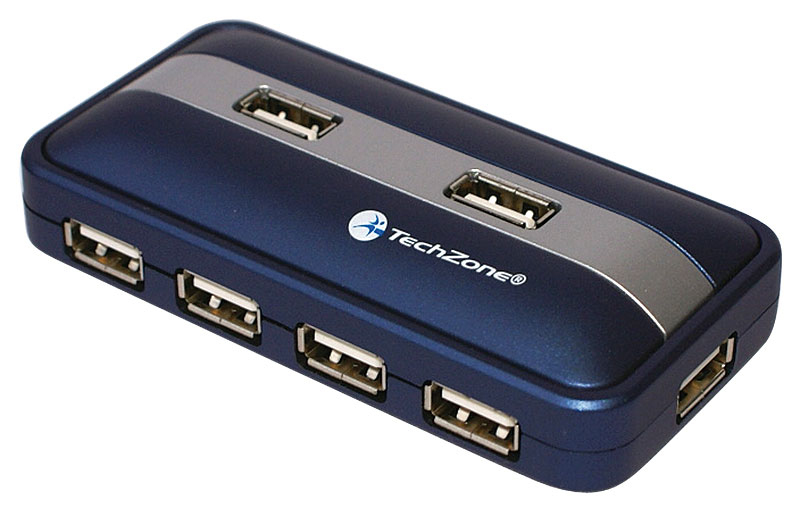 TechZone Hub USB 2.0. Kompatibilität: Notebooks PC. Produktfarbe: Blau, Grau. Schnittstelle: USB 2.0, Kompatible Betriebssysteme: Windows 98 Windows 2000 Windows ME Windows XP Windows Vista Windows 7