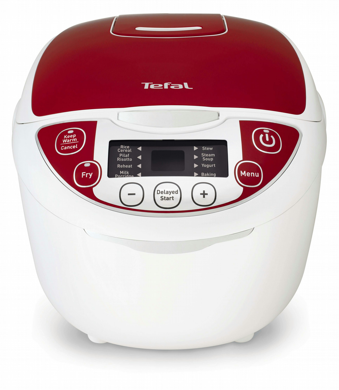 Tefal RK7051. Fassungsvermögen: 1,8 l, Leistung: 750 W, Kochprogramme: Risotto, Stew, Dessert, Braten, Neuerwärmen, Suppe, Dampf, Joghurt. Produktfarbe: Rot, Weiß, Schüsselmaterial: Keramik, Display-Typ: LCD