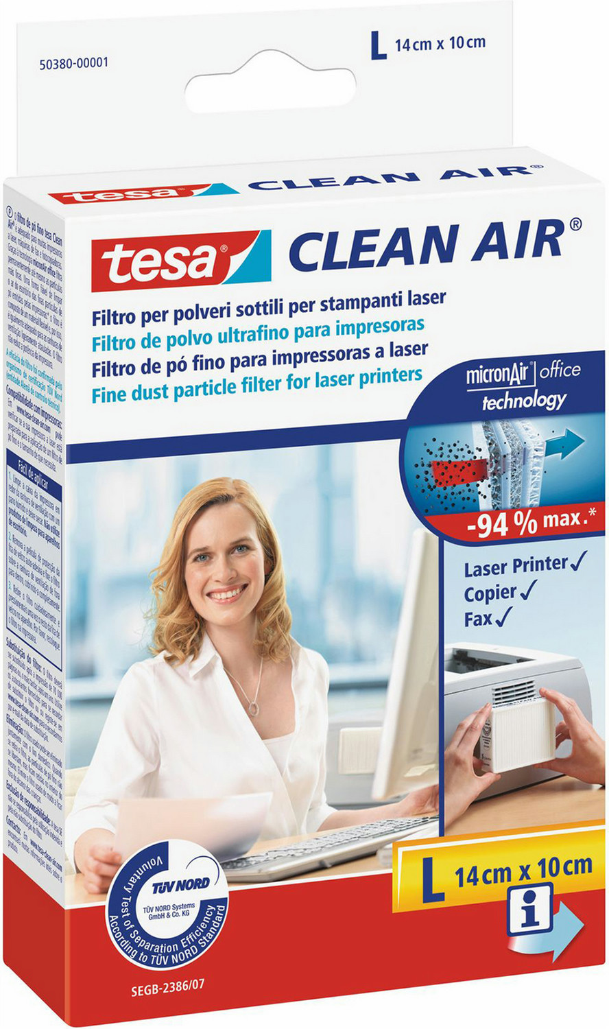 Umfangreiche Tests haben bewiesen, dass Laserdrucker Feinstaub ausstoßen. Manche Modelle sondern soviel Feinstaub ab, dass die Luft in einigen Büros stärker belastet ist als in unmittelbarer Nähe einer durchschnittlich befahrenen Autobahn. Der tesa Clean Air® Feinstaubfilter schafft ein sauberes Arbeitsklima.