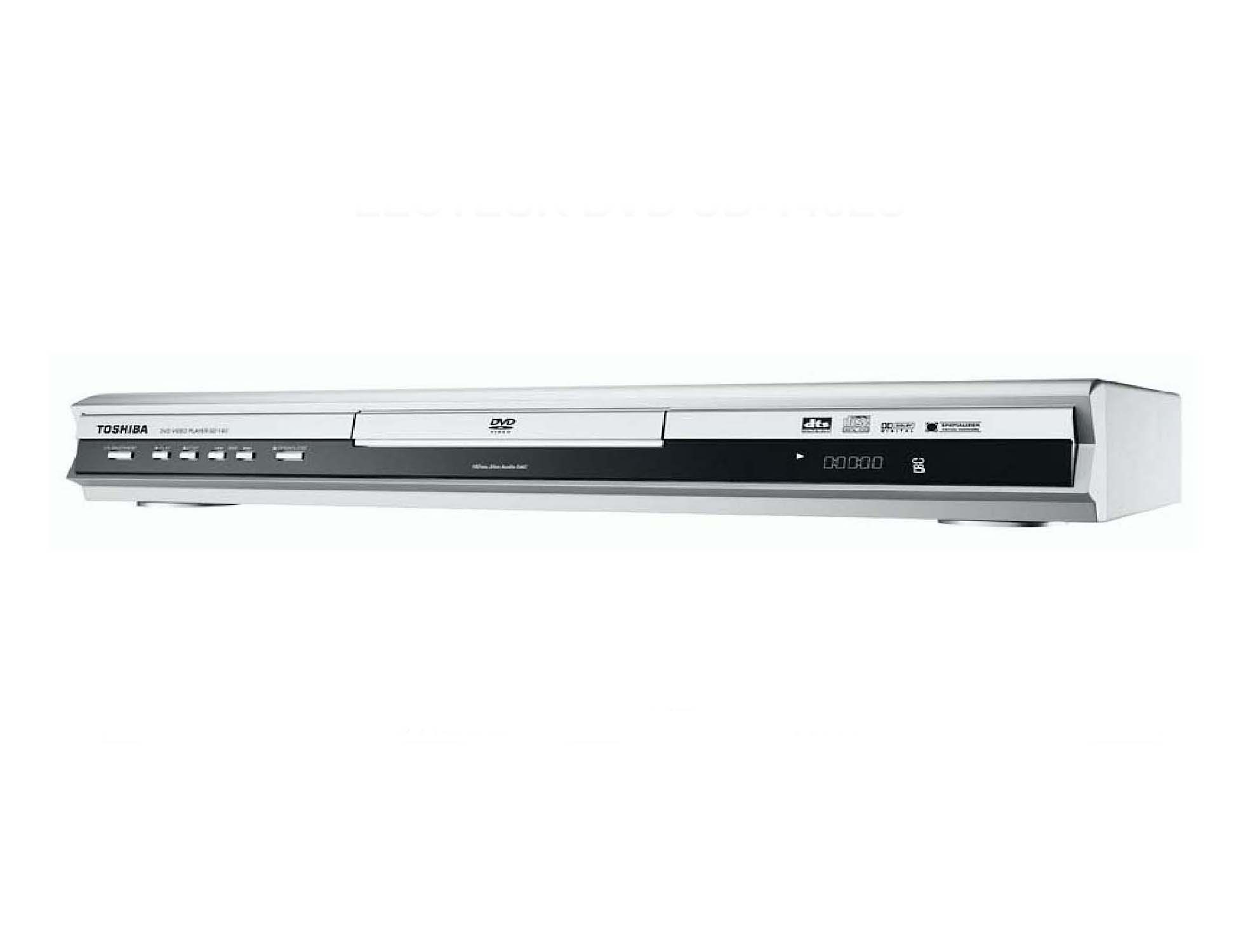 Toshiba DVD-Player SD-140E ST. Video D/A Konverter: 10-Bit/54MHz. Audio D/A Konverter: 24-bit/192kHz. Unterstützte Audioformate: MP3, WMA. Teilnehmerausgang: PAL / NTSC, Energiebedarf: AC 230- 240, 50Hz, Unterstützte Medien: DVD-R