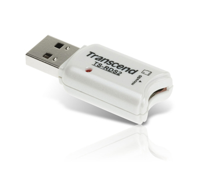 Transcend microSD Card Reader S2. Schnittstelle: USB 2.0. Produktfarbe: Weiß. Abmessungen (BxTxH): 44 x 19 x 11 mm, Kompatible Betriebssysteme: Windows Me, Windows 2000, Windows XP, Windows Vista, Mac OS 9.0, Linux Kernel 2.4.2