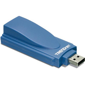 Trendnet 56K USB Data/Fax/TAM Modem. Modemgeschwindigkeit: 56 Kbit/s, Schnittstelle: USB 2.0 A. Unterstützte Protokolle: V.92, V.90, V.34, V.32(bis), V.22(bis), V.22, V.23, V.21, Bell 212A, Bell 103. Netzteiltyp: DC. Abmessungen (BxTxH): 100 x 35 x 23 mm, Gewicht: 25 g. Zertifizierung: FCC CE