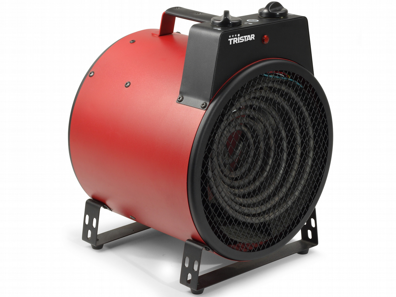 Stabiler 3000W Heizstrahler mit Umstoßsicherung und Spritwasserschutz(IPX2). Mit dem praktischen Handgriff lässt sich das Gerät einfach umstellen.