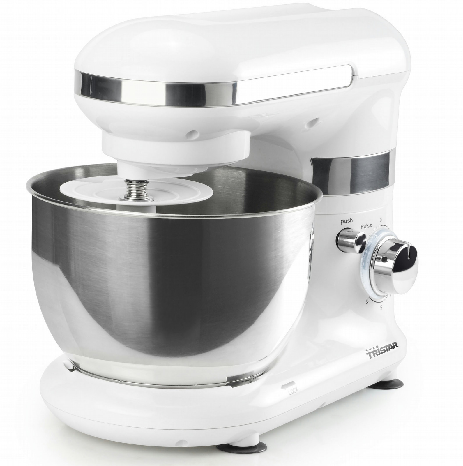 Professionell und robuste Küchenmaschine mit 4L Edelstahl-Schüssel und drei Zubehörteilen, Schneebesen, Knethaken und Rührbesen. Die Küchenmaschine ist mit 6 Geschwindigkeitsstufen und einer Impuls Schalterstellung ausgestattet.