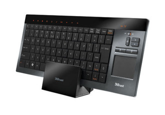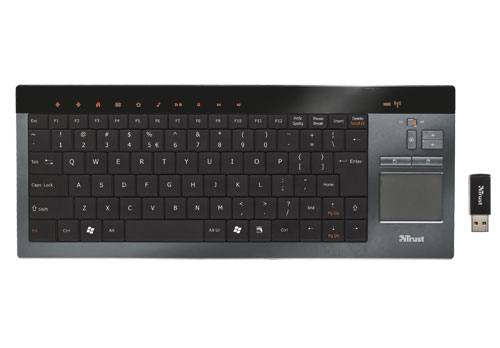 - Kompakte, sehr flache Funktastatur mit integriertem Touchpad, zusätzlichen Multimediatasten und integriertem Li-Ion-Akku mit separater Ladehalterung – das ideale Eingabegerät für Media Center PCs