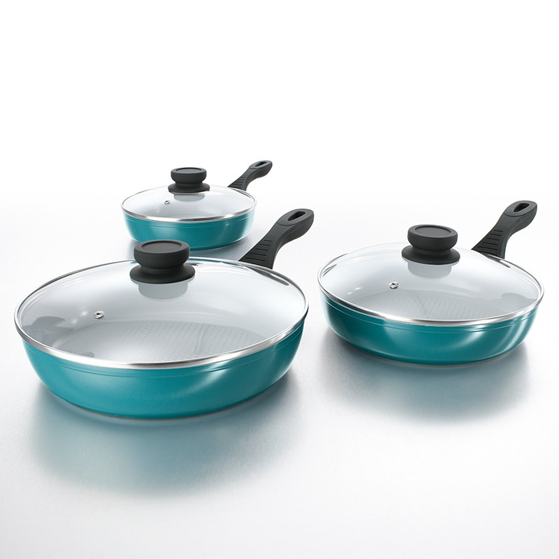 Titan-Keramik-Pfannen smaragdgrün, 6er Set mit Glasdeckel