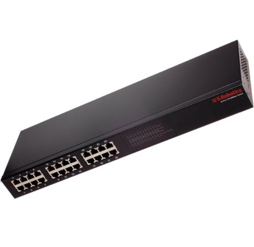 US Robotics 24-Port 10/100 Ethernet Switch. Switch-Typ: Unmanaged network switch. Kupfer Ethernet Verkabelungstechnologie: 100Base-TX,10Base-T. Netzstandard: IEEE 802.3u,IEEE 802.3x. MAC-Adressentabelle: 4096 Eintragungen, Routing-/Switching-Kapazität: 4,8 Gbit/s, Max. Datenübertragungsrate: 0,1 Gbit/s. Data Link Protokolle: Ethernet, Fast Ethernet