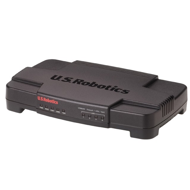 US Robotics Firewall/VPN Router. Netzstandard: IEEE 802.3,IEEE 802.3u,IEEE 802.3x, Zahl der Benutzer: 253 Benutzer. Unterstützte Netzwerkprotokolle: IP (RFC 791), TCP, UDP, ICMP, ARP, RARP. Firewall: SPI, NAT, VPN Unterstützung: VPN Server (PPTP & IPSec) VPN Client (PPTP & IPSec) VPN Client pass through. Flash-Speicher: 16 MB, RAM-Speicher: 64 MB, Eingebauter Prozessor: Intel IXP422. Gewicht: 490 g