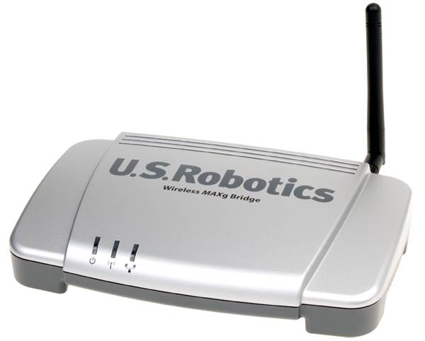 US Robotics Wireless MAXg ENet Bridge. Datenübertragungsrate (Maximum): 125 Mbit/s. Antennentyp: 2 dBi. Frequenzband: 2.4 - 2.4835, Anzahl Kanäle: 13 channels. Netzwerkfunktionen: Ethernet/Fast Ethernet, Konformität mit Industriestandards: 802.11g, 802.11i, Verkabelungstechnologie: 10Base-T, 100Base-TX. Übertragungstechnik: Kabellos