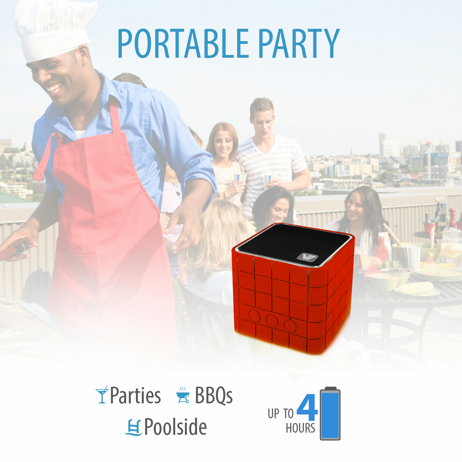 Genießen Sie Ihre Lieblingslieder über Ihr Bluetooth-fähiges Gerät mit den kristallklaren Sound der Bluetooth-Funklautsprechern von V7. Ein besonderes Plus ist die Reichweite von rund zehn Metern sowie die Freisprecheinrichtung, dank der Sie mit Ihrem Bluetooth-fähigen Mobilgerät auch Telefongespräche annehmen können. Im Gesamtpaket enthalten ist ein leistungsstarker 2 Watt-Lautsprecher, ein integrierter Subwoofer und eine Bass-Vibrationsfunktion. Der integrierte Akku lässt sich per USB in zwei bis drei Stunden wiederaufladen und bietet unterwegs bis zu vier Stunden ununterbrochenen Musikgenuss.