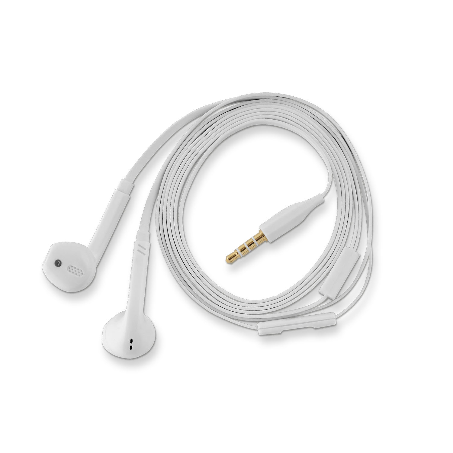 V7 Stereo-Ohrhörer in Weiß mit Inline-Mikrofon – Freisprechbetrieb und kein Kabelgewirr dank flachem Kabeldesign