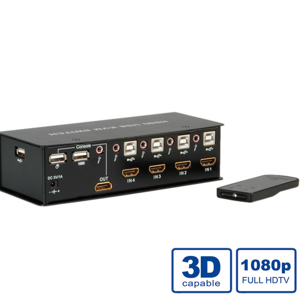 HDMI USB 2.0 KVM-Audio-Switch mit USB Hub, 1 User - 4 PCs