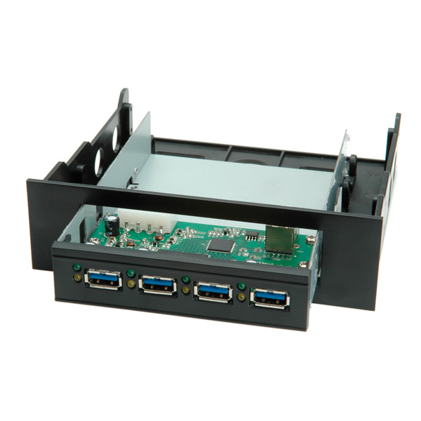 <ul><li>Anschluss von bis zu vier Peripheriegeräten an den USB-Port eines PCs</li><li>Hub kann in einen Typ 3.5 - und - mit Adapterrahmen - auch in einen Typ 5.25 -Slot eingebaut werden</li><li>Abwärtskompatibel zu USB 2.0 und USB 1.1</li><li>Unterstützt USB 3.0 Datentransfer bis zu 5 Gbit/s</li><li>Status-LEDs für die einzelnen Ports</li><li>Stromversorgung erfolgt vom PC-Netzteil</li><li><b>Lieferumfang:</b> Interner USB 3.0 Hub, Adapterrahmen, Bedienungsanleitung, USB 3.0 Kabel</li></ul>.
