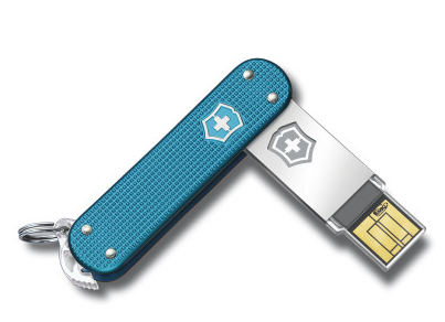 Victorinox Slim 8 GB. USB-Version: USB 3.0 (3.1 Gen 1), USB-Anschluss: Typ A, Unterstützte Sicherheitsalgorithmen: 256-bit AES. Formfaktor: andere, Produktfarbe: Blau