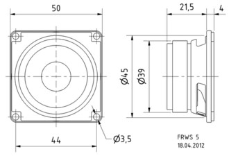 Visaton FRWS 5 - 8 Ohm. Typ: Full range speaker driver, Form: Oval, Frequenzbereich: 150 - 20000 Hz. Driver size (W x H): 50 x 50 mm