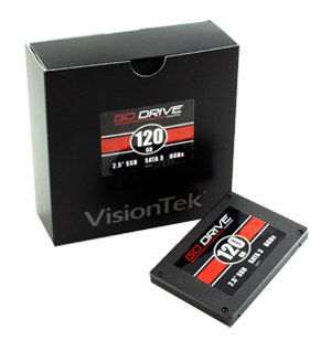 VisionTek GoDrive 120GB 2.5" SATA-III. SolidStateDrive (SSD) Schnittstelle: Serial ATA III, Speichertyp: MLC. SSD-Formfaktor: 2.5", Produktfarbe: Schwarz, Zertifizierung: CE / FCC / RoHS. Verpackungsart: Box. Verpackungsabmessungen (BxTxH): 156 x 11,3 x 101 mm, Geräteanschluss: Verkabelt