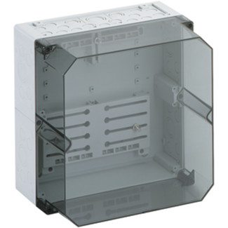 Zählergehäuse - Industrie Qualität -, mit transparentem Deckel, serienmäßig plombierbar, mit montiertem Zählerkreuz für Drehstromzähler und Zählerbefestigungsschrauben, mit Doppelmembranstutzen, Verschluss- und Isolierstopfen