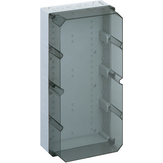Leergehäuse, mit Doppelmembranstutzen, Verschluss- und Isolierstopfen, Kasten: Polystyrol, lichtgrau ähnlich RAL 7035, Deckel: Polycarbonat, transparent