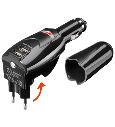 Kfz-Adapter (2in1) mit 2x USB Buchsen und 220V Netzstecker