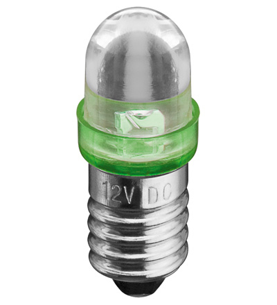 LED Kleinlampe als Ersatz für Röhrenlampen, Leuchtfarbe Grün, Sockel E10