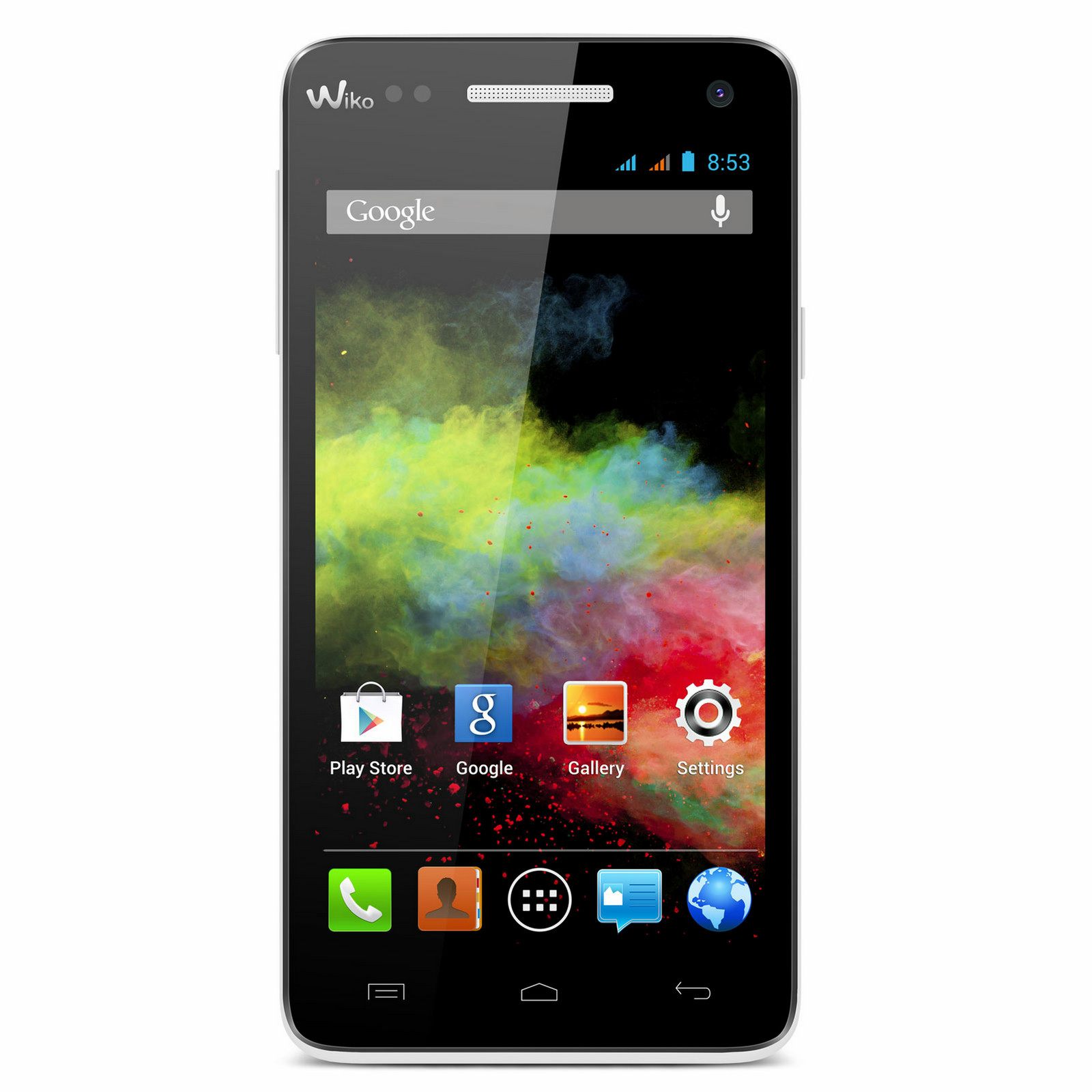 Wiko RAINBOW. Bildschirmdiagonale: 12,7 cm (5 Zoll), Bildschirmauflösung: 1280 x 720 Pixel, Form des Bildschirms: Flach. Prozessor-Taktfrequenz: 1,3 GHz, Prozessor Architektur: ARM Cortex-A7. Interne Speicherkapazität: 4 GB, Kompatible Speicherkarten: MicroSD (TransFlash), Max. Speicherkartengröße: 32 GB. Rückkameratyp: Single camera, Auflösung Rückkamera: 8 MP, Auflösung Frontkamera: 2 MP. Sim Card Steckplätze: Dual SIM, SIM-Kartentyp: MiniSIM, 2G-Standards: EDGE, GPRS, GSM