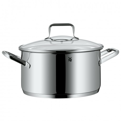 So vielseitig wie beliebt: In den Fleischtopf passt alles rein, was zum Kochen viel Flüssigkeit braucht. Und da sein Rand besonders hoch ist, spritzt beim Braten von Fleisch nichts heraus. Auch Nudeln, Kartoffeln und Klöße nimmt er ohne Probleme auf. Großvolumige Gemüsesorten wie Blumenkohl lassen sich prima blanchieren, die gegarten Kartoffeln direkt im Topf pürieren oder zerstampfen. Die innen liegende Messskala erleichtert das Abmessen von Flüssigkeiten. Griffe, die nicht heiß werden, eine Dampföffnung im Deckel und der breite Schüttrand machen das Arbeiten mit ihm noch leichter. Die Fleischtöpfe besitzen einen TransTherm® Allherdboden für eine gleichmäßige Wärmeverteilung und lange Wärmespeicherung. Es gibt sie in unterschiedlichen Größen von 12 bis 24 Zentimeter Durchmesser für den Single- bis zum Familienhaushalt. Praktisch: Der Fleischtopf gehört zu allen mehrteiligen Kochtopf-Sets von WMF.