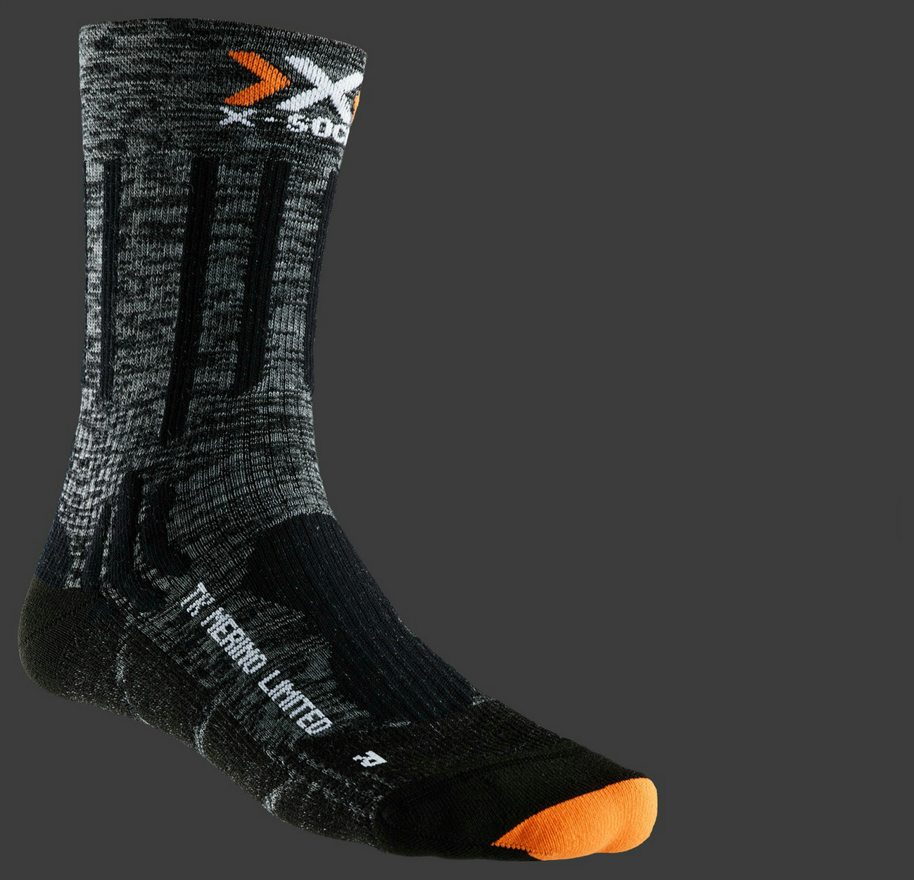 X-SOCKS® Trekking Merino Limited - Barfußklima® durch thermoregulierende und stabilisierende Technologien, mit dem komfortablen Tragegefühl von Merinowolle. 15-fach geschützt und patentiert. Wärmend, schützend und optimal klimatisiert. Speziell konstruierte Polsterzonen machen diese Merinosocke zur richtigen Wahl für festere Berg- und Trekkingschuhe. Mit der speziellen X-SOCKS® Veredelung bleibt der einzigartige Tragekomfort von Merinowolle erhalten, jedoch wird damit vor allem der Nachteil von Wolle (Feuchtigkeitsaufnahme) erheblich verringert – die perfekte Kombination aus „nature plus function“. Die patentierte X-Cross® Bandage sorgt für höchste Stabilität, Belüftungssysteme für trockene Füße, und Isolationskammern am Rist verhindern ein Auskühlen. Perfekt für kühlere Tage und Touren in etwas höheren Lagen.