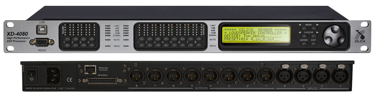 Xilica XD 4080. AC Eingangsspannung: 90-240 V, AC Eingangsfrequenz: 50/60 Hz. Mitgelieferte Kabel: AC