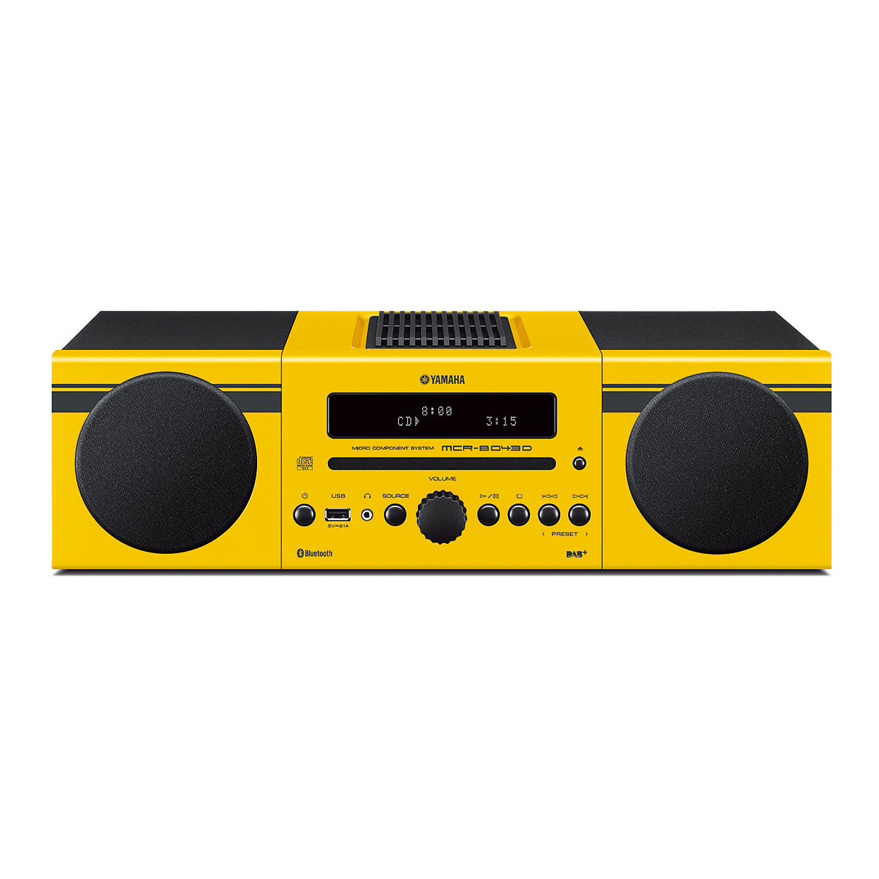 DAB/DAB+/FM tuner, 2x 15W, Bluetooth 3.0, CD, CD-R/RW, MP3/WMA, USB, Gelb