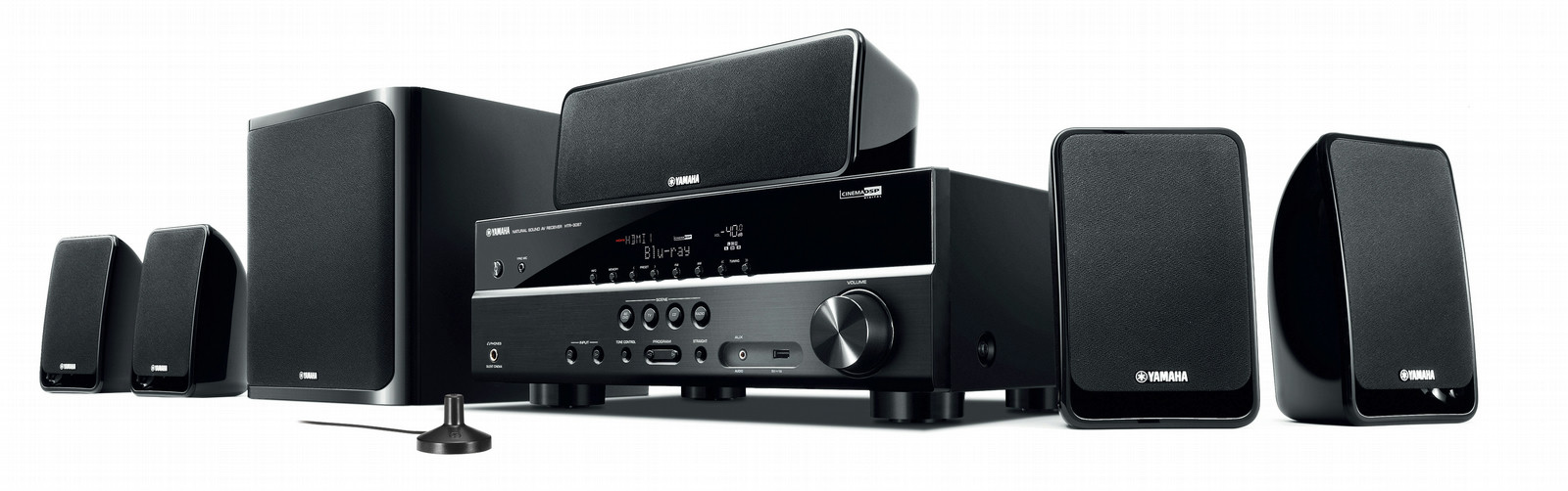 Yamaha YHT-2910. Optical disc player Typ: Nicht enthalten. Unterstützte Videoformate: DIVX. Audio Kanäle: 5.1, RMS-Leistung: 600 W, Eingebaute Audio-Decoder: Dolby Digital, Dolby TrueHD, DTS-HD, DTS-HD Master Audio. Front Lautsprecher typ: 1-Weg, Front Lautsprecher RMS Leistung: 200 W, Front Lautsprecher Sensitivität: 83 dB. Center Lautsprecher typ: 1-Weg, Zentrallautsprecher Energie: 100 W, Zentrallautsprecher Empfindlichkeit: 84 dB