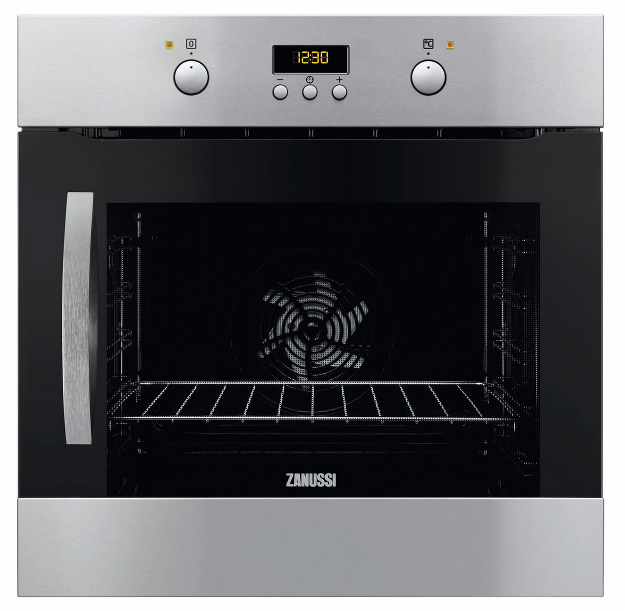 Zanussi ZOB35806XK. Ofentyp: Electric oven, Gesamtes Fassungsvermögen Garraum Ofen: 74 l, Insgesamt Backofen Leistung: 2780 W. Produktfarbe: Edelstahl, Kontrolltyp: Knöpfe, Rotation, Kontrollposition: Vorderseite. Timer-Typ: Digital. Energie-Effizienzklasse: A, Stromverbrauch (typisch): 2780 W. Breite: 594 mm, Tiefe: 567,4 mm, Höhe: 594 mm