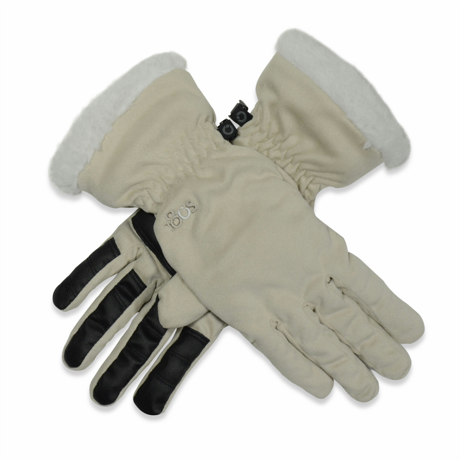 Winterlude, Size L, Beige/White Winterlude touch screen gloves for women are an amazingly comfortable way to keep warm. ALLTouch™ technology allows you to control your touch screen device with every fi nger without having to remove your gloves. Soft faux suede shell has a luxurious feel and fashionable look. Faux fur cuff lining adds style and warmth. Synthetic palm and fi ngers provide added grip and reinforcement in high use areas. Elastic wrist prevents cold air from entering the glove. Sherpa liner provides comfort and added warmth in colder climates, making these women's gloves an all time favorite.