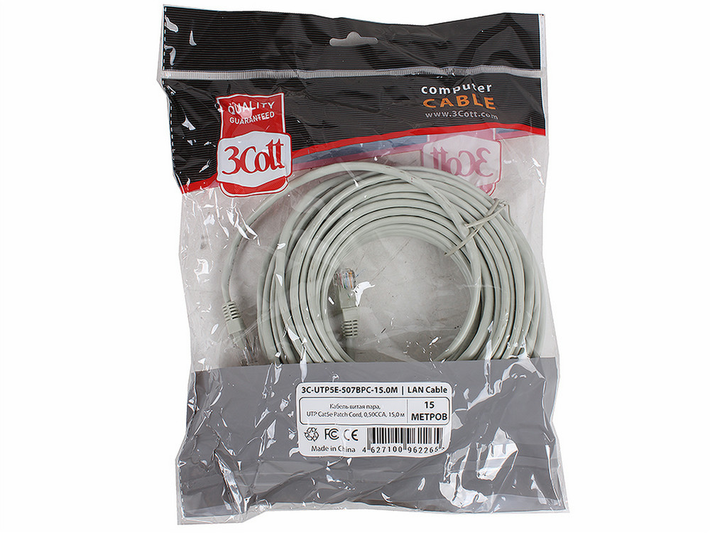 LAN cable, UTP Cat5e, 0.50 CCA, PVC jacket, OD:5.0, 15 m