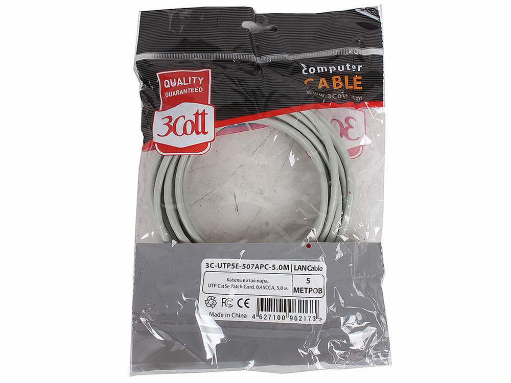 LAN cable, UTP Cat5e, 0.45 CCA, PVC jacket, OD:5.0, 5 m