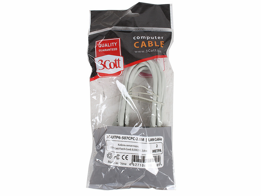 LAN cable, UTP Cat6, 0.5 CCA, PVC jacket, OD:6.0, 2 m