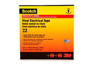 Scotch® Tape 22 Abrasion-Resistant Tape provides electrical and mechanical protection with the combination of an aggressive rubber-resin adhesive and an elastic PVC backing. This tape is flame-retardant and is highly resistant to UV rays, moisture, alkalis, acids, corrosion and varying weather conditions. It has increased mechanical strength and is suitable for both indoor and outdoor applications. The tape is compatible with solid dielectric cable insulations, synthetic cable insulations, jackets and splicing compounds. UL Listed, ASTM Approved, VDE, CSA Certified and RoHS 2011/65/EU Compliant.