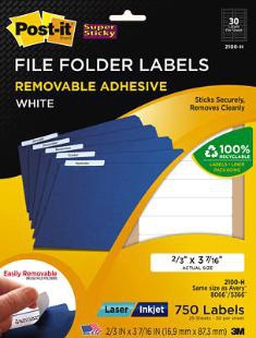1.6764 cm (0.66 ") x 3.4375", 750 Labels/Pack, 25 Shts/Pack, Laser/Inkjet, Removable, Adhesive, Paper, White