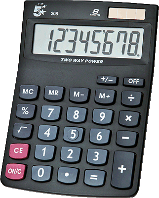 5Star 208. Form factor: Desktop, Type: Basic calculator, Colour of product: Black. Control type: Buttons. Storage media type: Not available. Power source: Battery/Solar