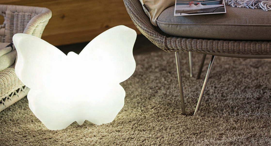 Butterfly, white LED, Polyethylen, UV, indoor/outdoor, 12 cm The Shining Micros are only usable for indoor. the battery driven Shining Micros are illuminated by lED lights and easily turned on and off. the flower is also available with a colour changing lED light.