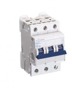 Circuit breaker 3-pole, triggering characteristic C, rated current 16A, rated short-circuit withstand capacity 6KA, rated voltage 230/400V AC, access: box terminal up to 35mm², outlet: box terminal up to 25mm², in accordance with IEC 60898-1, DIN EN 60898