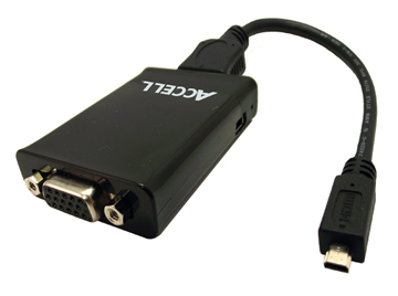 The Accell Micro HDMI to VGA adapter uses premium components to ensure the highest performance and maximum ease of use with your mobile device. The adapter is designed to work with devices featuring the Micro HDMI (Type D) connector.