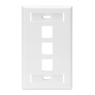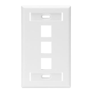 Single-Gang QuickPort Wallplate with ID Windows, 3-Port, White Leviton single-gang and dual-gang wallplates accept QuickPort snap-in modules to support multimedia station applications with 1, 2, 3, 4, 6, 8, and 12 ports. Use where port designation windows in a single-gang or dual-gang economical flush-mount housing is desired. Available in five colors: white, light almond, grey, ivory, and black.