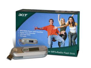 Acer MP3+Radio Flash Stick is the brand new multi-function MP3 player . Compared with the single-function MP3 Player, Acer MP3 Flash Stick owns not only the stylish outlook with an EQ built in LCD, but also the high quality digital voice recorder as well as FM Radio earphone. We successfully combine the convenience of well-known USB flash drive , popular MP3 player and delicate-design digital voice recorder in one stick . With one AAA batteries, you will take the advantage of 12 hours non-stop playing time. Acer MP3+Radio Flash Stick is suitable for each occasion—for meeting, for data storage and of course, for music enjoyment. It is absolutely your best choice from various consumer products.