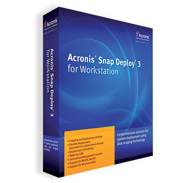 - Fully compatible with Acronis Snap Deploy 2.0 and other Acronis products — Acronis Snap Deploy 3 for Workstation is capable to deploy images created with ASD 2.0 and Acronis True Image Echo