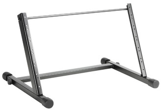 - Rack stand 6 units high. - Black finish, drilled tapped for M5 screws. - Floor or desk mount. - 12 screws included.