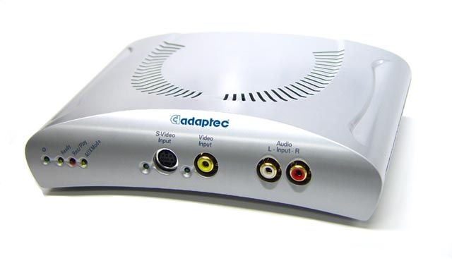 Adaptec® Video Converter DVD USB-Device Kit (VideOh!™ DVD) provides the easy way to convert analog camcorder movies digitally then create easy-to-share, long-lasting DVD or Video CD discs with your home computer. VideOh! DVD includes an external USB 2.0 MPEG-2 capture/encoder box with USB & A/V cables for simple connectivity to camcorders or other analog video device. It also includes Sonic™ MyDVD™ DVD-Video creation software for Windows®, which allows you to edit, organize and burn video clips.
