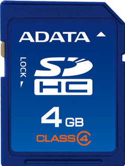 ADATA 4GB SDHC Card. Capacity: 4 GB, Flash card type: SDHC, Read speed: 4 MB/s. Colour of product: Blue