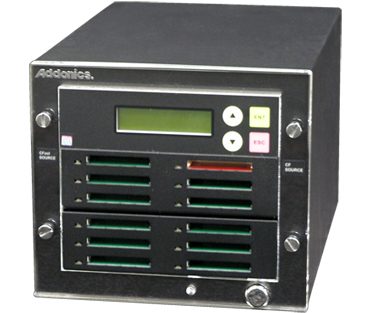 The Addonics CF or CFast Duplicator is a family of fast and economical equipment for making copies of CF or CFast media. Choose from an array of models that allows you to duplicate 4, 5 or even 10 media at a time. The CF/CFast Duplicator is also easy to operate. Simply insert the source media into the source slot and target media with equal or larger capacity into the destination slots, then push the copy button to start the copying process. There is no complicated software to run.